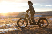 The first of its kind, the Grizzly is equipped with Tektro dual-piston brakes, 400-lumen headlight, rear pannier rack, and fenders. And while battery capacity depends upon the weight of the rider, riders typically average one mile per battery amp hour.