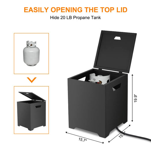View full detailsCamplux Propane Tank Cover, 20 LB Propane Tank Storage Box, Outdoor Tank Hideway Table for Propane Fire Pit and Gas Griddle Black Description Speci...