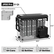 Our JP50 Prod easily transitions between single and dual zones with a broad -4°F to 68°F cooling range. Powered by a reliable SECOP (Danfoss) compressor (5-year warranty on compressor, 1 year for other parts), it features Bluetooth App Control for convenient temperature management on the go. Two handles, sturdy wheels, and a 40° tilt anti-vibration function ensure stable movement, while the reversible lid opens from the left, right, or detaches entirely for quick access. An optional UV lamp automatically sterilizes the interior after 30 minutes of corded use. Measuring 28.5" × 13.8" × 21" and weighing 44 lbs, the JP50 Pro is your perfect partner for hassle-free refrigeration or freezing—anytime, anywhere.