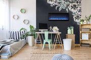 The black, nearly frameless finish surrounding this modern, linear, electric fireplace creates a minimalist look that doesn't interfere with your décor, instead it enhances the fire aspect of the fireplace