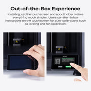 True Out-of-the-Box Experience: Simple setup—mount the touchscreen and spool holder, then follow on-screen auto-calibrations to start printing immediately.